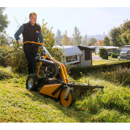 La débroussailleuse AS63 4T B&S est une machine professionnelle, permettant de réaliser des travaux de mulching et de défrichages d’herbes hautes jusqu’à 90cm et prairies fleuries, que le terrain soit plat ou irrégulier. C’est l’outil parfait pour l’entretien des terrains de sport, les vignes ou prés-vergers.