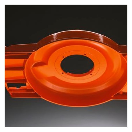 – Plateau de coupe synchronisé : les deux lames du plateau de coupe sont décalées de 90 degrés. Leur synchronisation permet aux couteaux de s’emboîter sans contact. Il en résulte une qualité de coupe constante ainsi qu’un transport optimal de l’herbe vers le canal d’éjection.